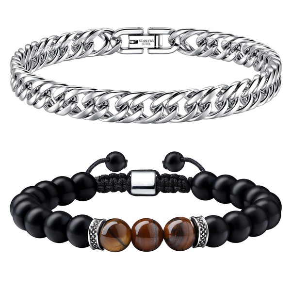 - 【High Quality】 The natural stone bracelets are made of natural gemstone agate and tiger's eye stone, unique and eye-catching design. Stainless steel bracelets are made of stainless steel, waterproof and rustproof, and can be worn for many occasions.