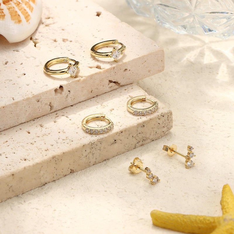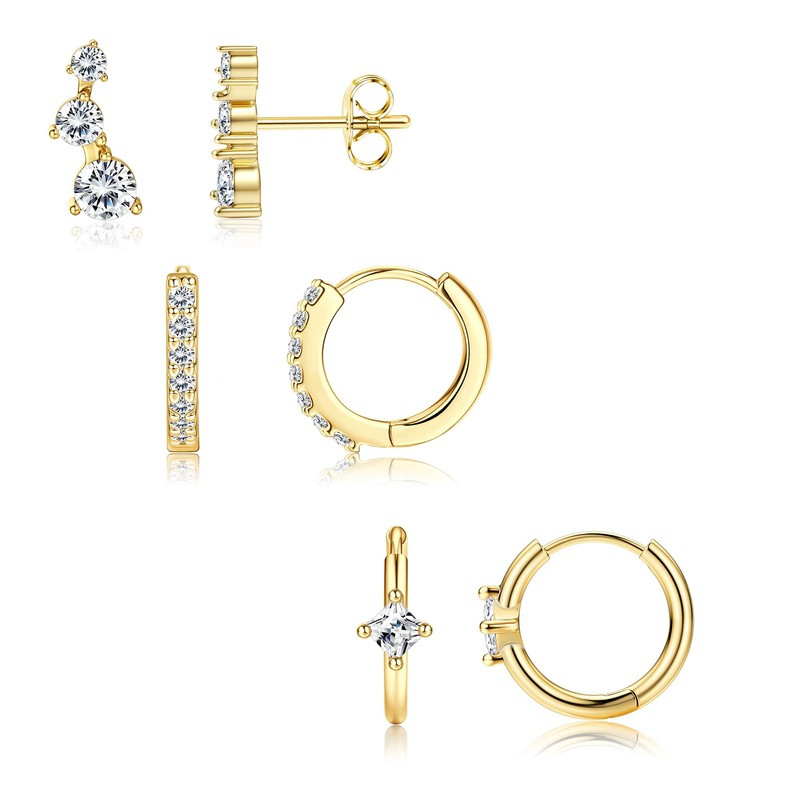 - 【Vielfältiges Set】Unser Gold-Ohrring-Set enthält drei Paare in unterschiedlichen Stilen – von klassisch bis modern. Jedes Paar ist mit hochwertigen Zirkonia-Steinen besetzt, die ein funkelndes Flair verleihen. Perfekt, um sie einzeln zu tragen oder mit anderen Ohrringen zu kombinieren für einen individuellen Look.