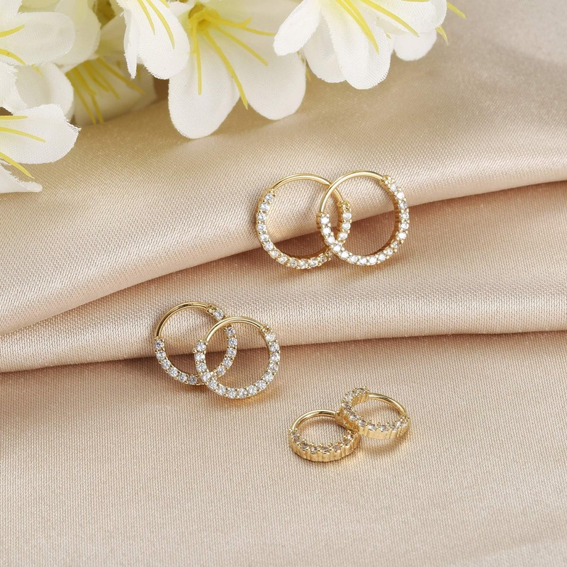 - Small Hoop Earrings Sizes: Zirconia studs 2mm & 8mm in diameter, available pin length 8mm, stud bar 0.8mm thick. Hoop earrings 8mm, 10mm, 12mm in diameter, pin 1mm thick, 2mm wide. Silver/gold. The men's and women's multi-pack stud earrings are a reliable choice for those with many ear holes. The most suitable sizes and the most complete range of colours for you to choose from.