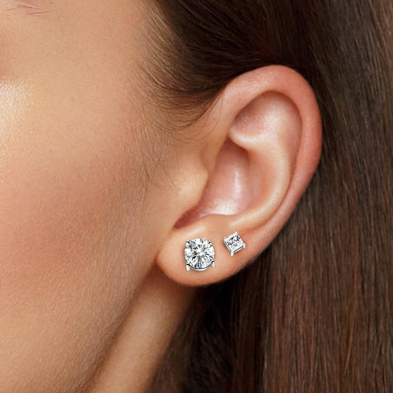 - 💕5 Pairs of Silver Stud Earrings: 3 pairs of round diamond stud earrings: 3/5/8mm and 2 pairs of square CZ stud earrings: 4/6mm. 5 sizes in one set meet your needs, match your own jewelry. These diamond earrings consist of Classic, Minimalism & Chic. Stud earrings in a minimalist style suit all outfits.