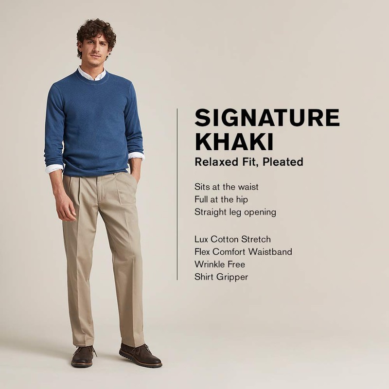 Dockers Men's Relaxed Fit Signature Khaki Lux Cotton Stretch Pants-Pleated, Timberwolf, 34W x 32L