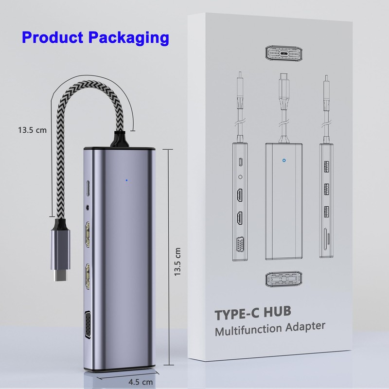 - 【USB C Docking Station 10 IN 1】With this laptop docking station, you can easily fulfill your daily use by extending one USB C port to Dual Monitor 4K HDMI, VGA, USB 3.0 port(5Gbps), 2 USB 2.0 ports, USB C Power Charging Port (max 100W), USB C Data,SD/Micro SD card readers and 3.5mm audio. (Please Notice: If you use it connected to a MacBook, it only supports mirroring mode, not multiple monitors.)