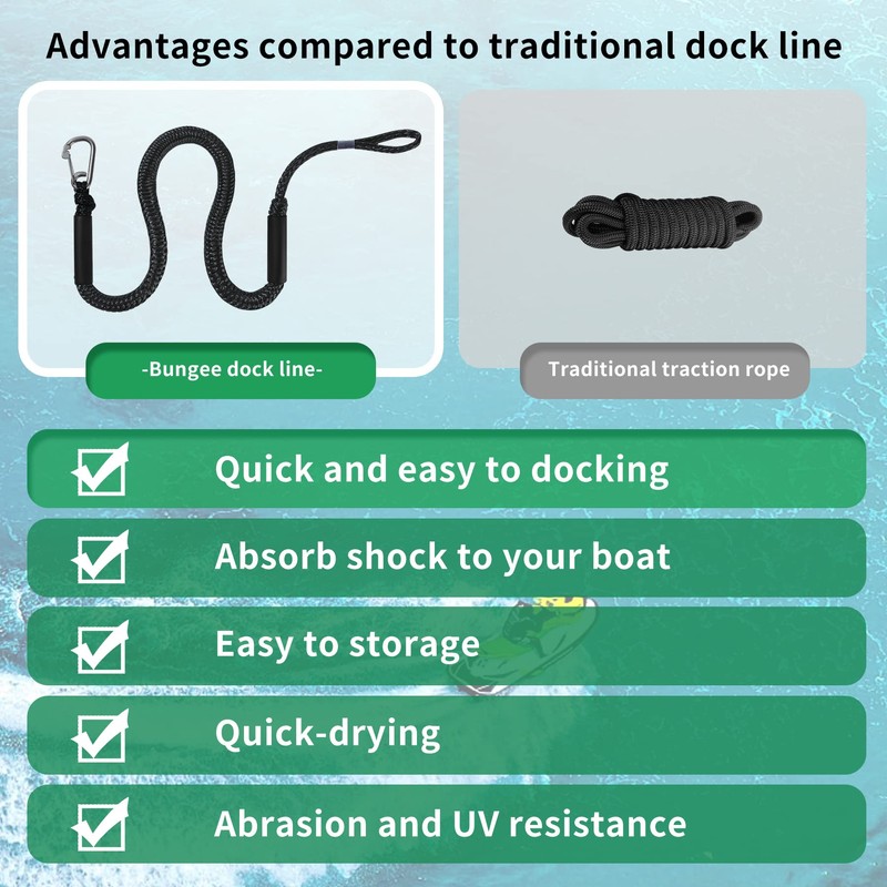 DockMoor Bungee Dock Lines for Boats Marine Mooring Lines Boat Rope for Docking with Loop and Clip Accessories for Jet Ski, PWC, Pontoon, Kayak, SeaDoo, WaveRunner (green-2pack)