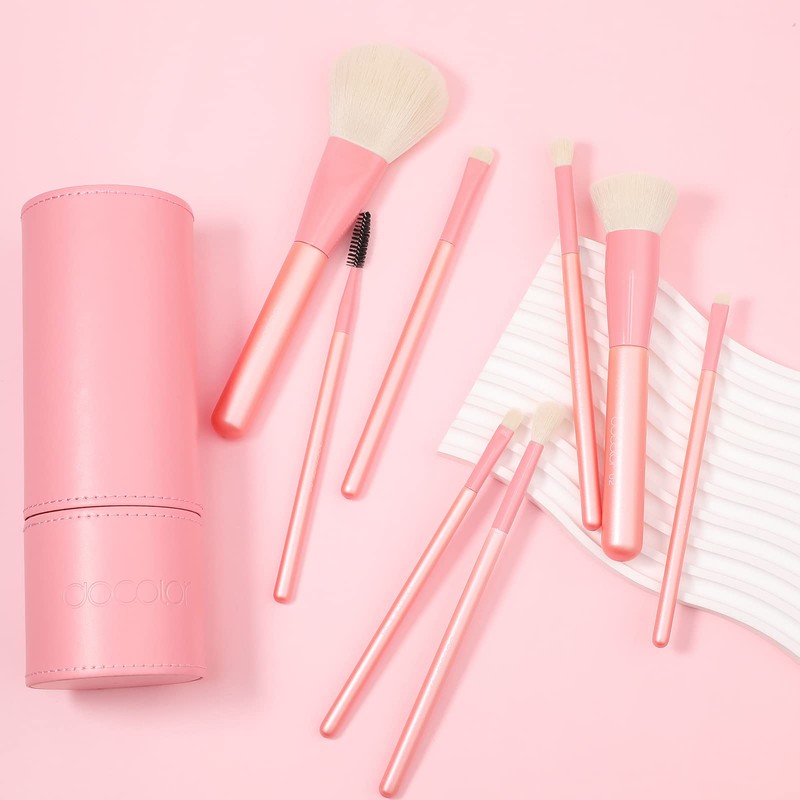 - 8 Pieces Makeup Brushes Set: The Pinky brush set includes flat foundation brush, powder brush, concealer brush, eye shadow brush, eyebrow brush, spoolie, brush holder. Ideally for applying, blending and shading products. Easy and convenient for daily makeup use.