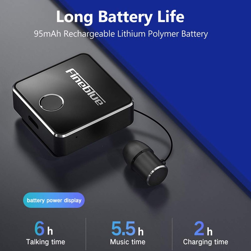 Docooler Fineblue F1 BT 5.0 Headphones, Clip-On Wireless Headphone Cable, Retractable Headphone Music Headset, Vibration Alarm, Hands-Free Function with Microphone Multipoint Connection