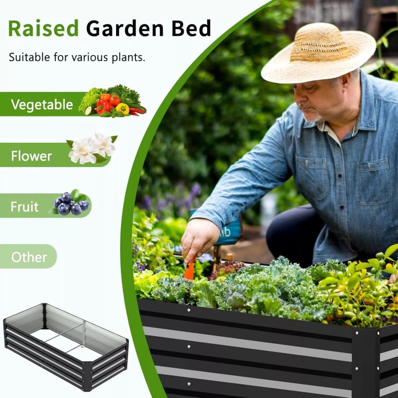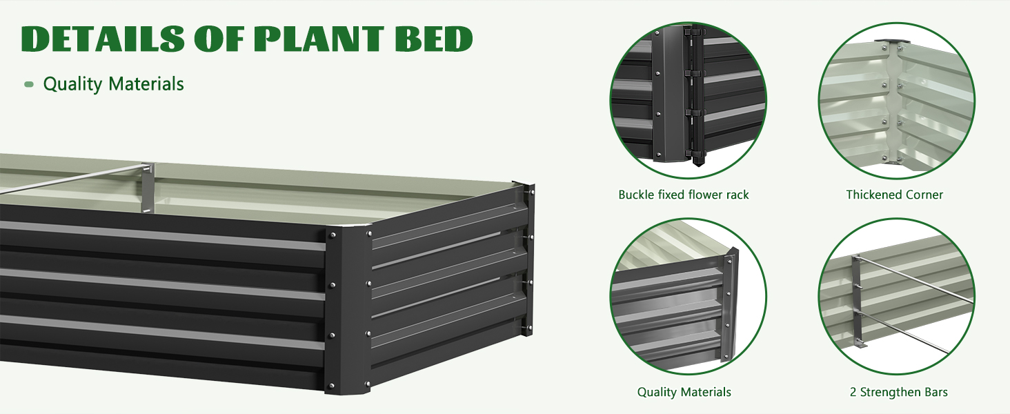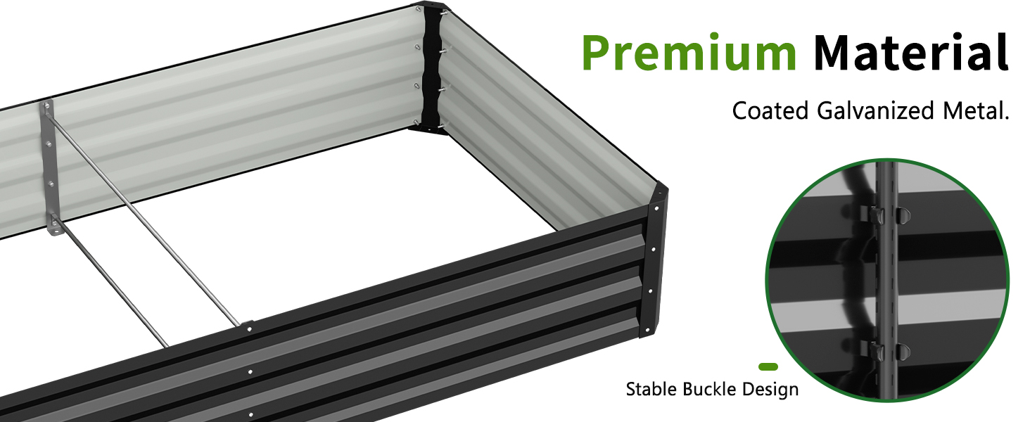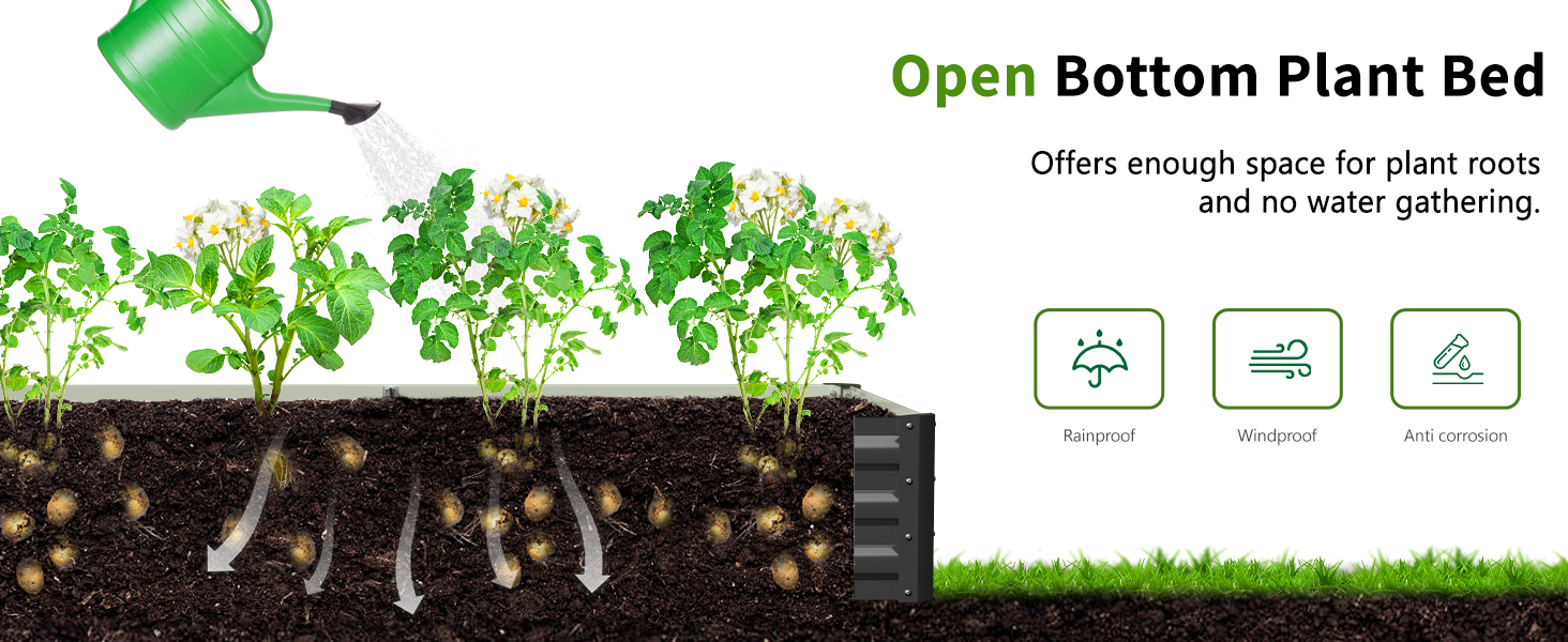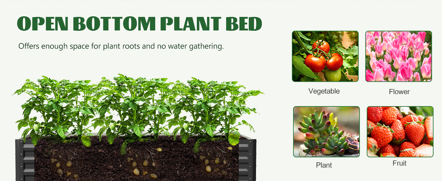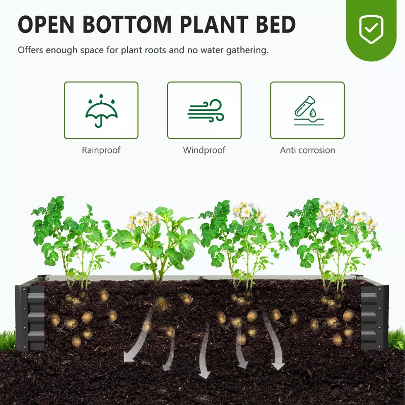 Healthy plant growth requires a great garden bed. Our galvanized raised garden bed is an indispensable tool for your gardening. The powder-coated galvanized steel ensures its long service life. The bottomless design provides better drainage for an excellent growing environment. Start your garden time off right with our metal garden bed, and get ready to see your garden grow and flourish like never before.