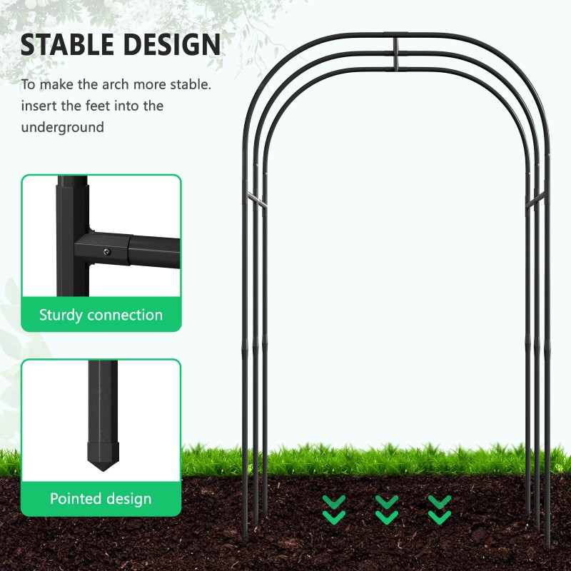 - 【LARGE ARCH TRELLIS】 Extra Tall Garden Arch and Sturdy construction adds stylish decoration to your garden, walkway, or outdoor event. The open design of the overhead arch's provides ample space to plant or create the perfect entryway to your garden. Ideal for growing flowers, grapes, cucumbers, melons and gourds, and more.