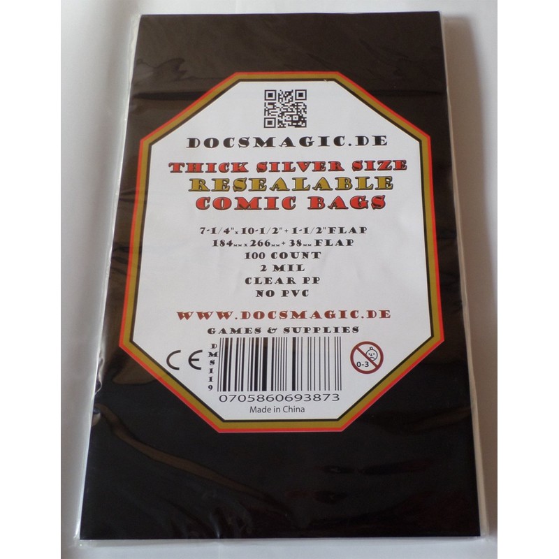 docsmagic.de 100 Resealable Thick Silver Size Comic Book Bags 7-1/4"+10-1/2"+1-1/2"Flap- 2 Mil