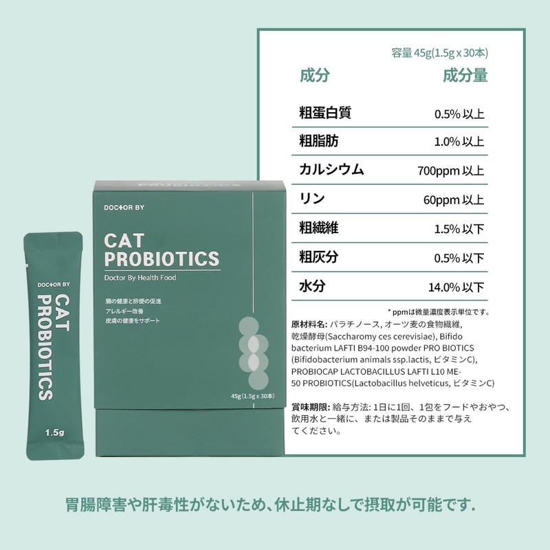 DOCTOR BY Probiotics, Lactic Acid Bacteria for Cats, Intestinal Health, Diarrhea, Constipation, Supporting Excretory Activities, Improve Immunity
