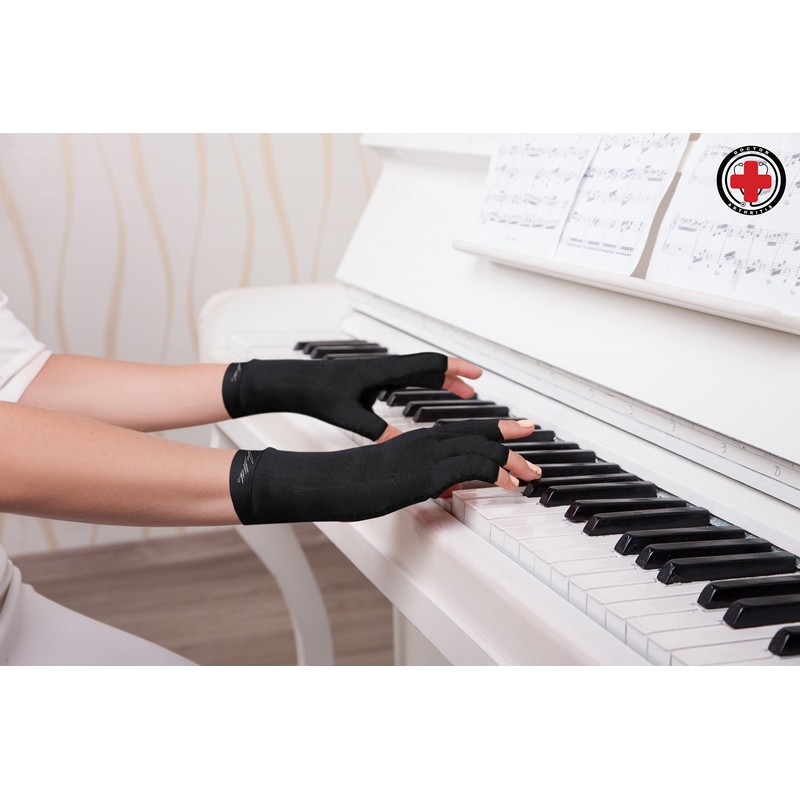 Doctor Developed Copper Arthritis Gloves/Compression Gloves and DOCTOR WRITTEN HANDBOOK -Relieve Arthritis Symptoms, Raynauds Disease & Carpal Tunnel (Black, Large)