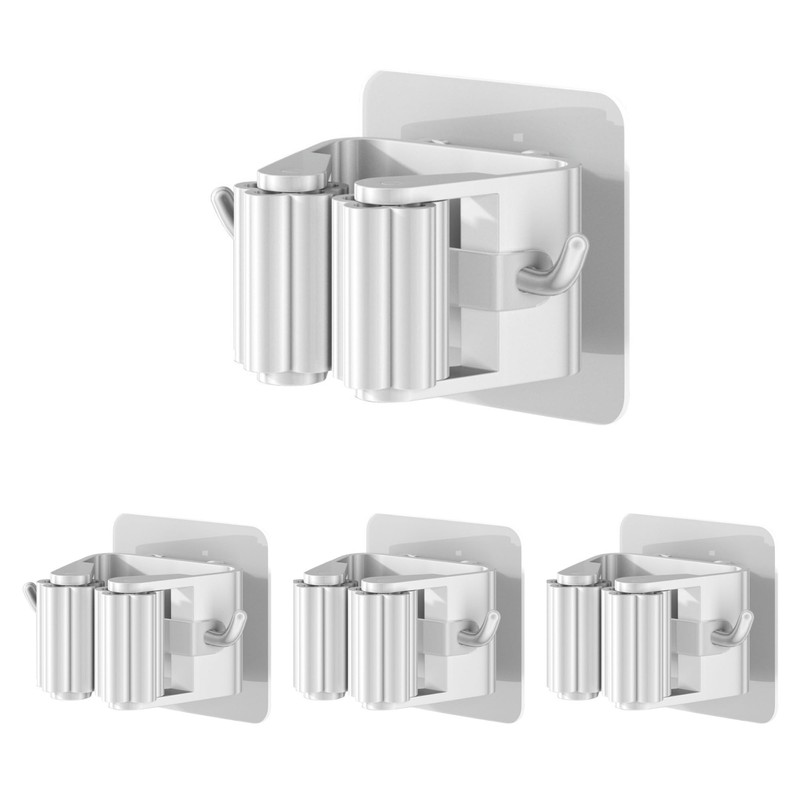 4 Stück Aufhänger für Besen, Mopps und andere Utensilien. Inklusive Haken zum Aufhängen aller Arten von leichten Gegenständen wie Bürsten oder Tüchern.