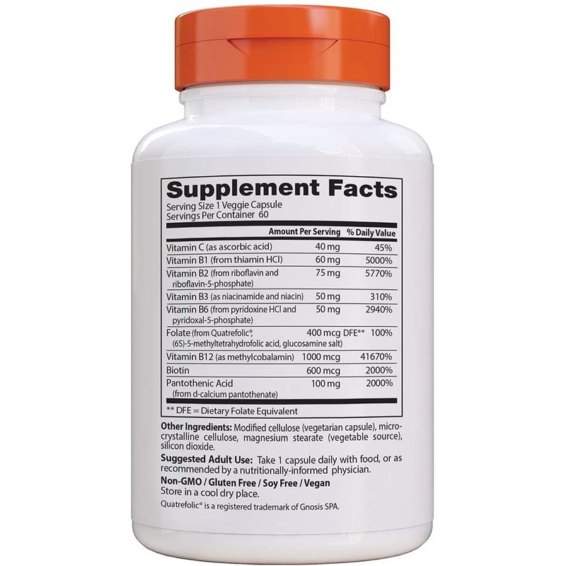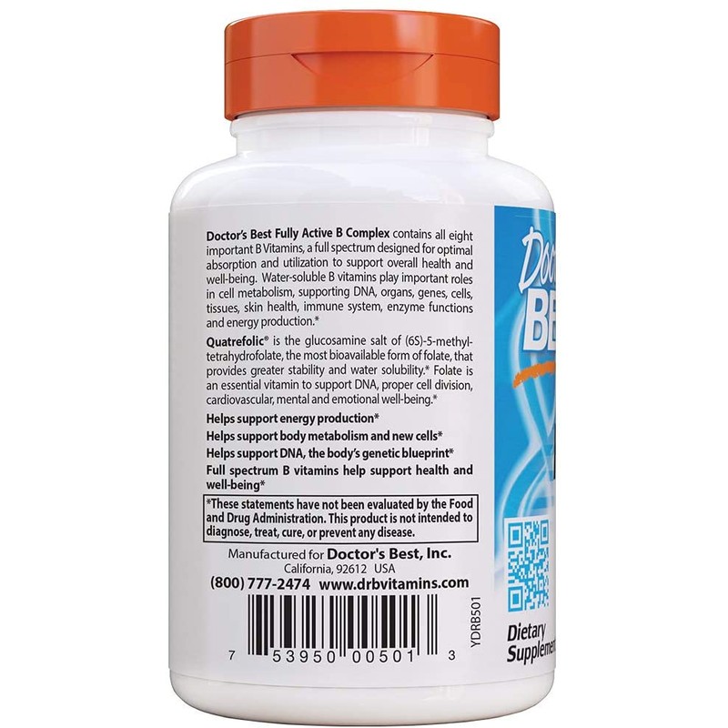 Doctor's Best, Fully Active B Complex Supports Energy Nervous System Optimal Health Positive Mood Wellbeing NonGMO Gluten Free Vegan Soy Free, 60 Count