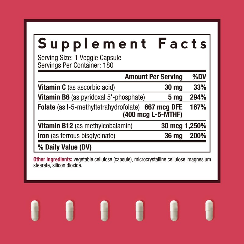 - Optimal Blood-Building Formula*: Our Iron Plus is a strong iron complex rather than just iron by itself. It is formulated to address different types of anemia caused by iron, folate or vitamin B12 deficiency.* With iron plus vitamin C, vitamin B6, B9 & B12, this optimal combination is available in one easy-to-swallow veggie capsule — a convenient way to give you (especially menstruating girls, pregnant women, vegans and vegetarians, athletes) healthy blood support and efficient energy output.*