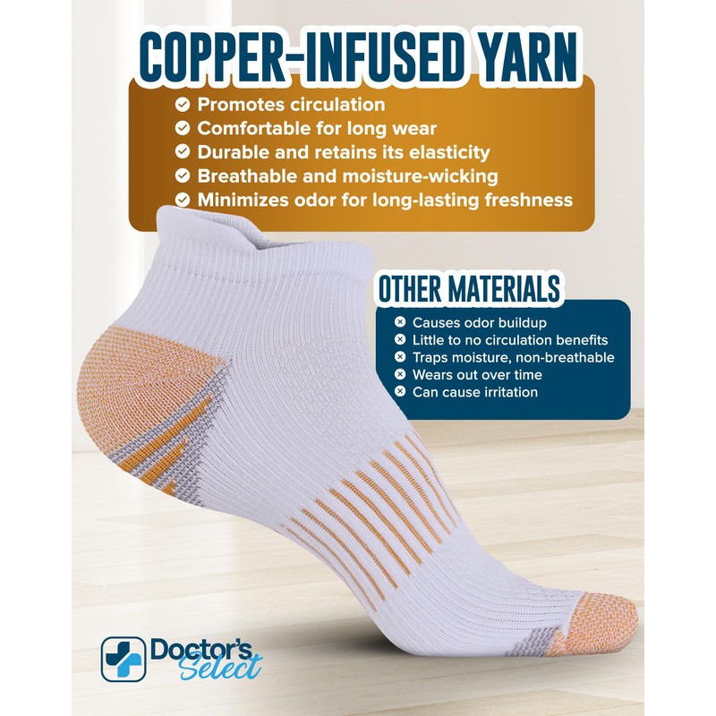 - Experience Copper-Infused Freshness - Keep your feet fresh around the clock with copper infused socks crafted to fight odor and moisture. Whether you're on the move or unwinding, these socks deliver support with every step.