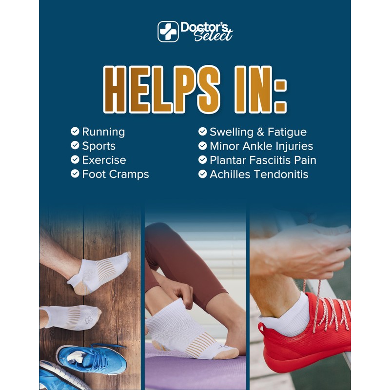 Doctor's Select Copper Ankle Compression Socks for Women and Men - 4 Pairs | Short Plantar Fasciitis Compression Socks | White