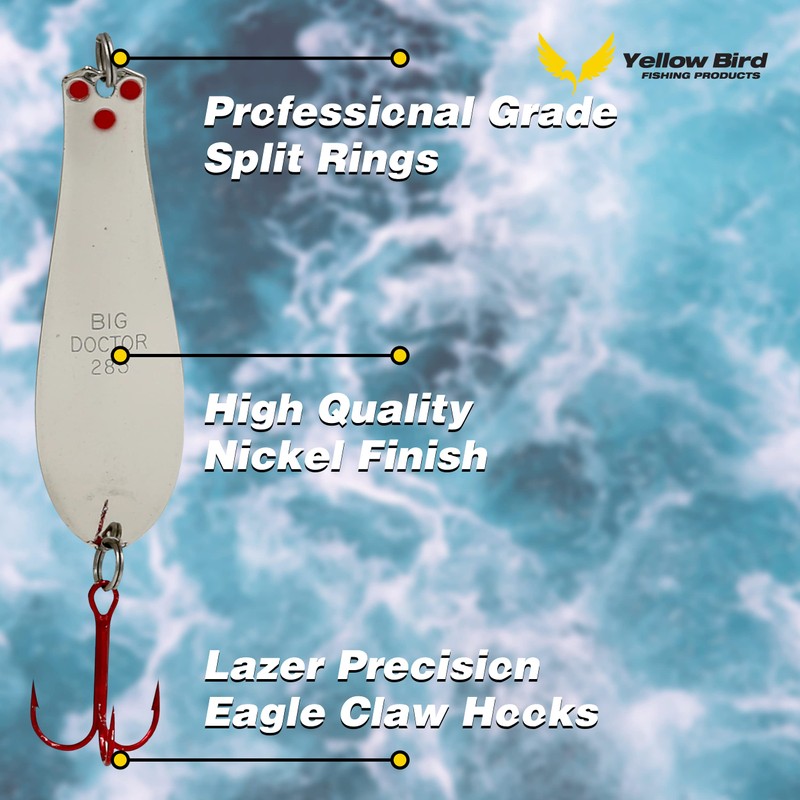 Doctor Spoons Trolling Series - Jigging Salwater & Freshwater Fishing - Walleye, Northern, Trout, Bass & More - Premium Eagle Claw Hooks - 3 Sizes & Weights - Yellow Bird Fishing Products 3 Pack