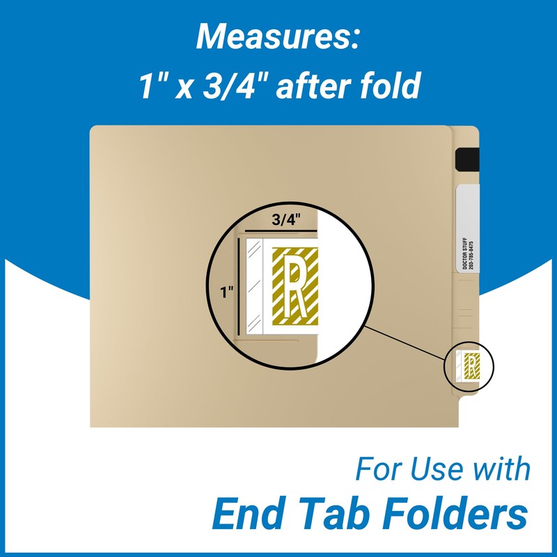 Designed with the needs of busy professionals in mind, these alphabet labels for file folders feature superior sticking power for reliable labeling that keeps them securely in place, even in high-traffic environments. Each label is packed in our convenient dispenser box of 500, in vibrant color, with the same letter printed twice to wrap around the folder, ensuring clarity and visibility on both sides.
