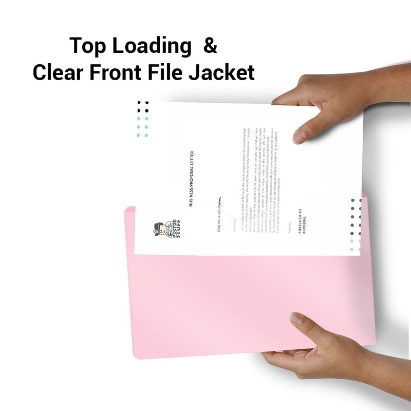 Doctor Stuff - Vinyl Plastic Pocket File Folders Closed Sides, Legal Size, Pack of 25 Clear Front Top Loading Job Jacket, Documents Holder for Office, High School and Medical Files, Pink