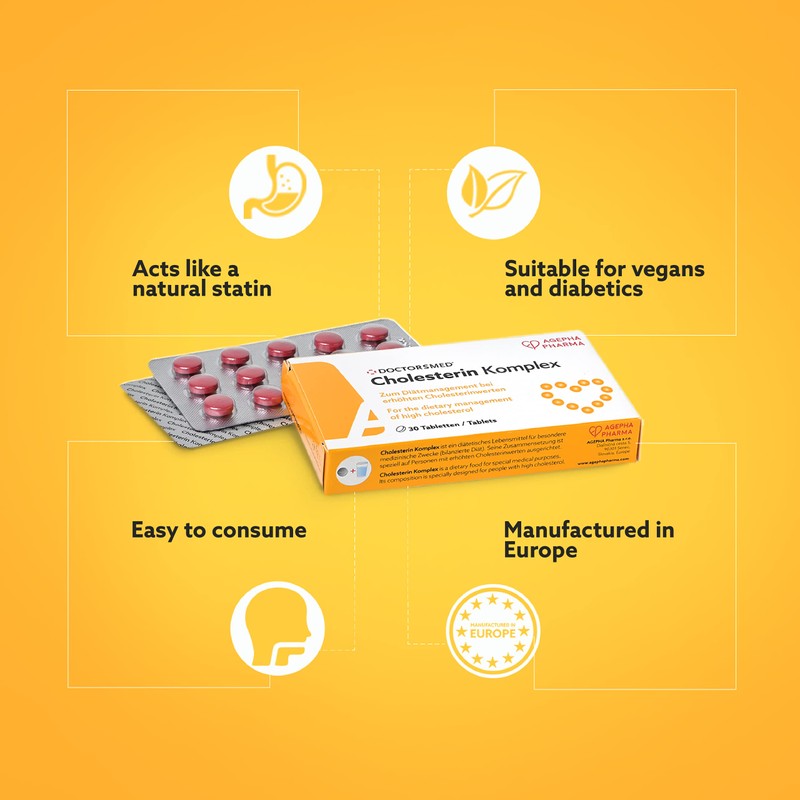 DOCTORSMED Cholesterin Komplex | 30 Vegan Tablets | Supplement to Maintain Cholesterol Levels | Red Yeast Rice Extract with Monacolin K | Gluten-Free, Lactose-Free | Manufactured in Europe