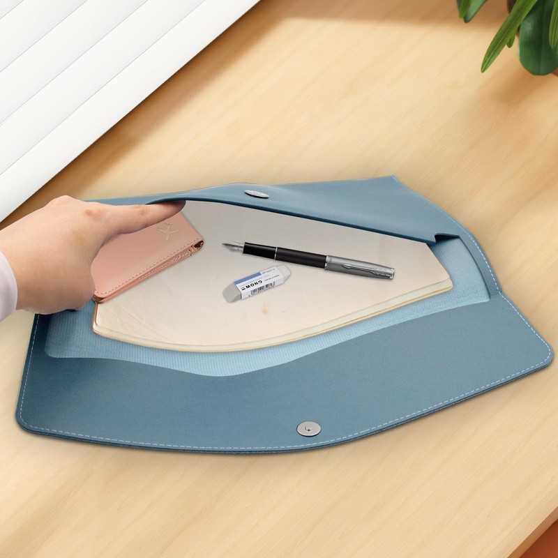 Document File Folder, New Soft Leather A4 Pocket Envelope Folder Wallets,Waterproof Soft Leather A4 Envelope Expanding File Organizer Portfolio Storage,File Organizer (Blue)