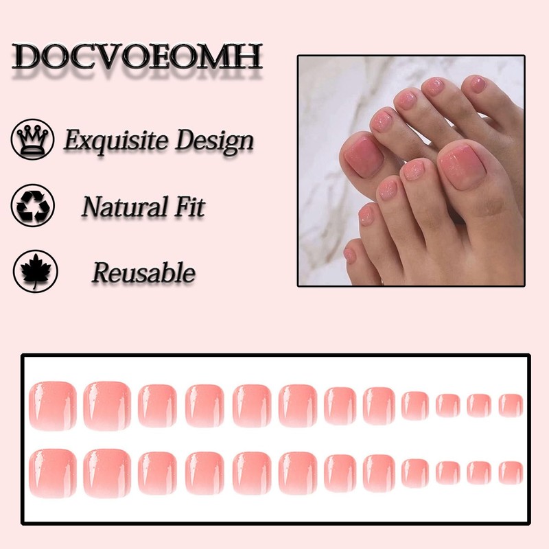- 【Packing Included】DOCVOEOMH acrylic press on toenails contains 24 pieces full cover short fake toe nails with 12 sizes, 24 pieces adhesive toenail double-side stickers, 1*mini nail file, and 1*wooden stick. Easy to be customized DIY your fashion false toenails salon
