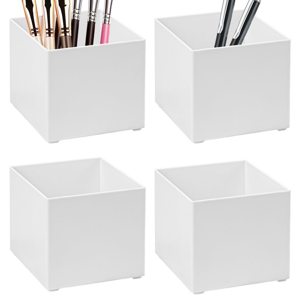 DODAMOUR Plastic Cube Storage Boxes Set, Square Organizer Bins for Desktop or Wall Use, Makeup Tools DIY Craft Supplies Storage Containers for Bathroom, Kitchen, Office, or Bedroom (4 Pcs, White)
