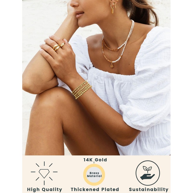 - Comfort Experience: Each bead is polished by hand, and the surface is very smooth and bright, ensuring a comfortable and safe wearing experience. The beads are electroplated with 14K real gold to ensure that the color is long-lasting and will not fade easily. With a sturdy and durable elastic rope, it can withstand regular stretching and wearing to fit the wrist tightly but not too tight.