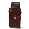 DODENSHA Slim Wallet with Coin Compartment, Men's Wallet with Button, Wallets for Men, Wallet with Ticket Compartment, Pop-Up Credit Card Case, Money Bag for 7-9 Cards, RFID Protection, Brown silver