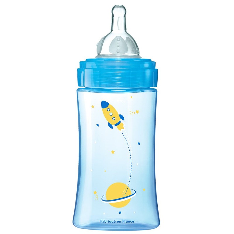 Dodie-Biberon Initiation+ Blue Astronaut - 0-6 Months, Round 3 Speed 2 Flow Teat - 270 ml