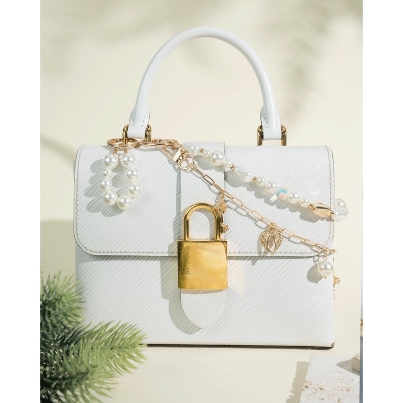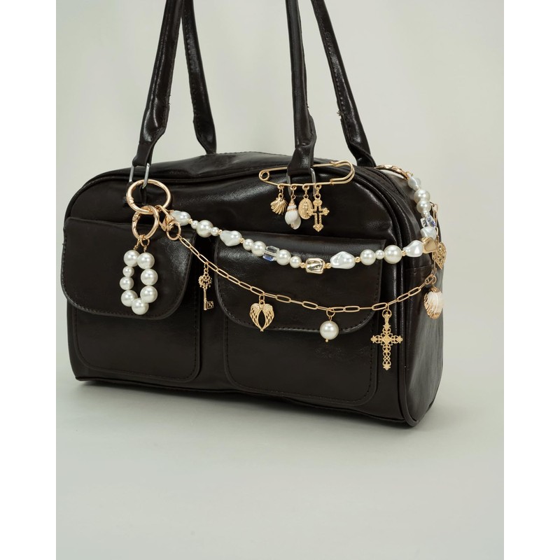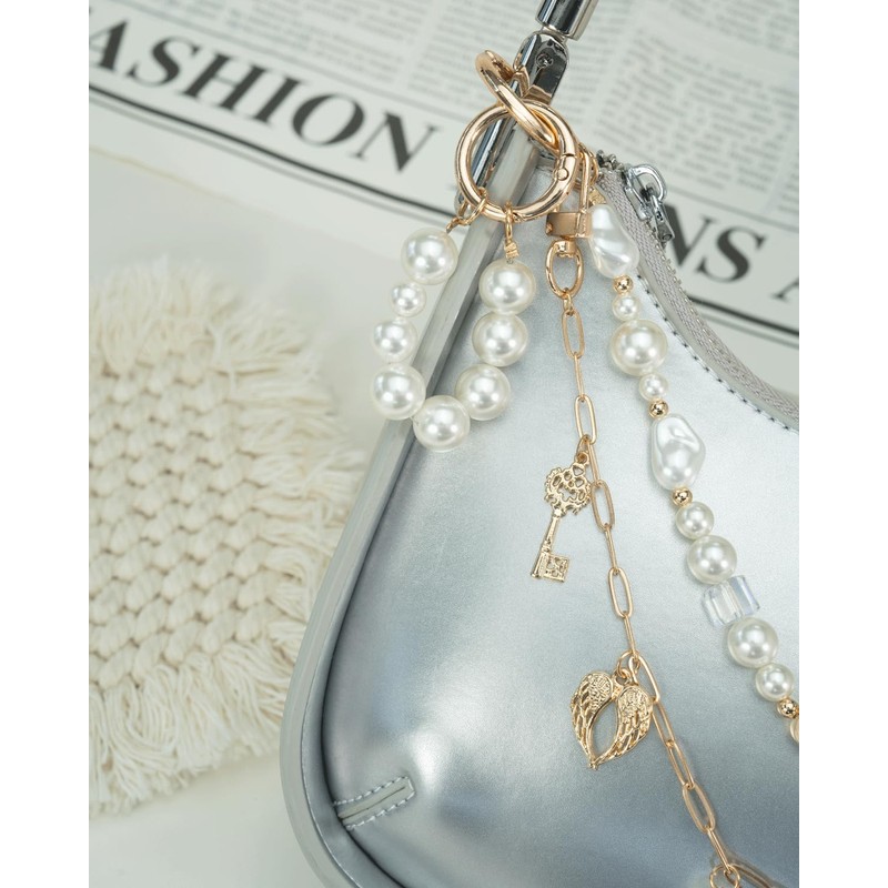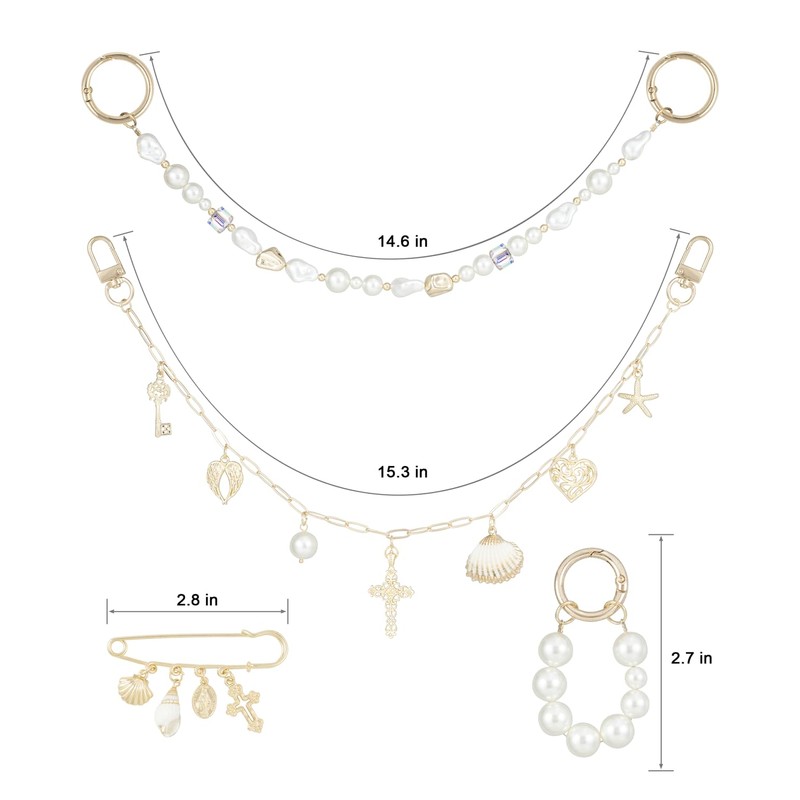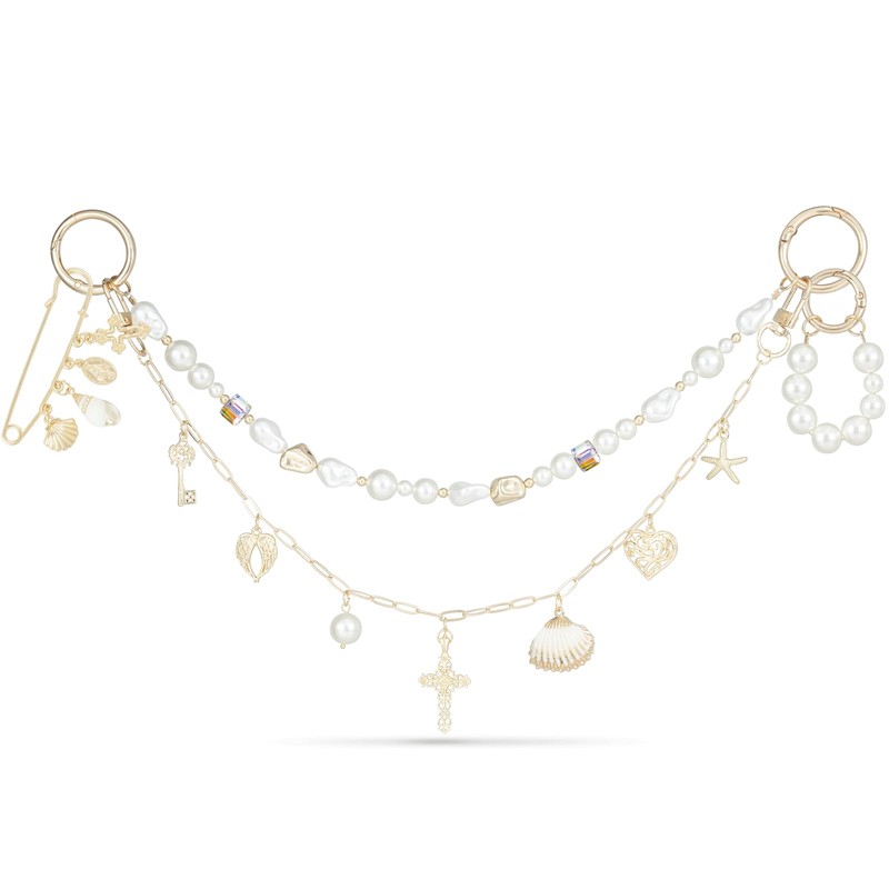 DoDoBeads 4-in-1 Bag Charms Set, Baroque-Inspired Purse Charms with Crystal Beads, Gold Chains, Pearl Keychain, and Cross Shell Safety Pin, Bag Charm for Handbags, Tote Bags, and Purse Keychains