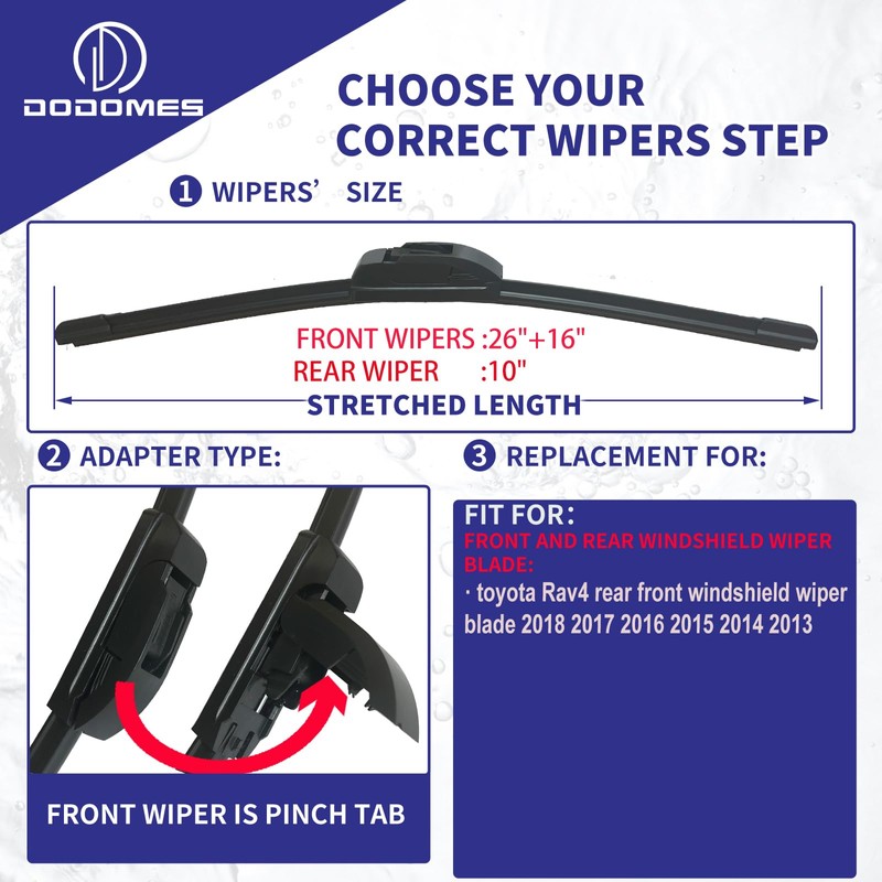 DODOMES 26" + 16" Windshield Wipers with 10" Rear Wiper Blade Replacement for Toyota Rav4 2013 2014 2015 2016 2017 2018 Original Factory OEM Quality (Pack of 3)