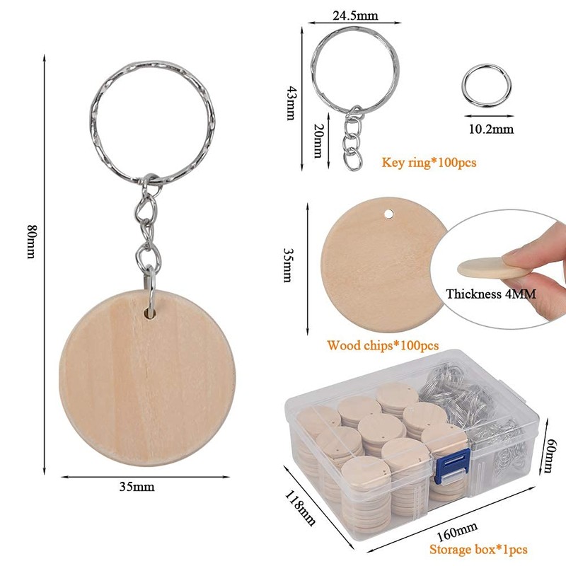 - 【Suitable Size for Many Uses】--The diameter of the wooden circles blank keychian is 35mm and the thickness is 4mm. Each log slices keyrings has holes with a diameter of 3 mm each. The diameter of the key rings is 25 mm.