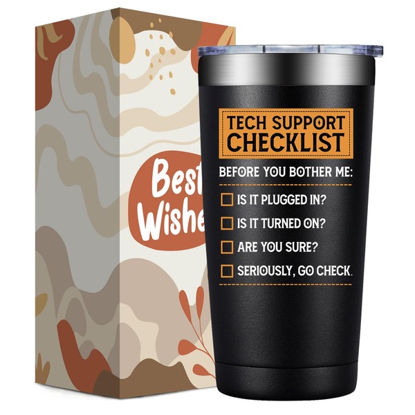 DOEARTE Tech Gifts for Men - Tech Support Checklist - Technical Gifts for Dad, Technician, Programmer, Techs Lover - 20oz Tumbler