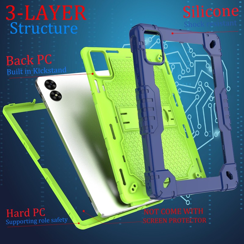 Doemoil Case for Vortex BTAB10/Vortex CMG10110.1 inch Tablet Hybrid Shockproof Firendly Case Built in Kickstand Shoulder Strap for Vortex BTAB 10/Vortex CMG101 10.1 inch Tablet (Navy Blue/Green)