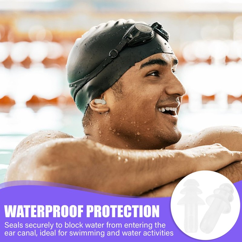 • Waterproof Protection for Swimming:Crafted from ultra-soft silicone, these swimming ear plugs form a secure seal to prevent water from entering the ear canal,protecting against swimmer's ear and ear membrane damage,Perfect for pool sessions, surfing,or water sports, they stay firmly in place even underwater