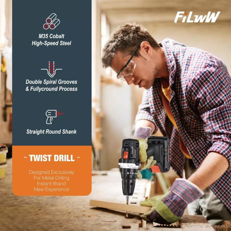 - 【Essential Tools】FiLwW cobalt drill is a high-performance cutting tool widely used in metal processing. M35 high-speed steel contains cobalt, which makes it have excellent wear resistance and thermal stability under high temperature conditions, making it very suitable for drilling hard materials.
