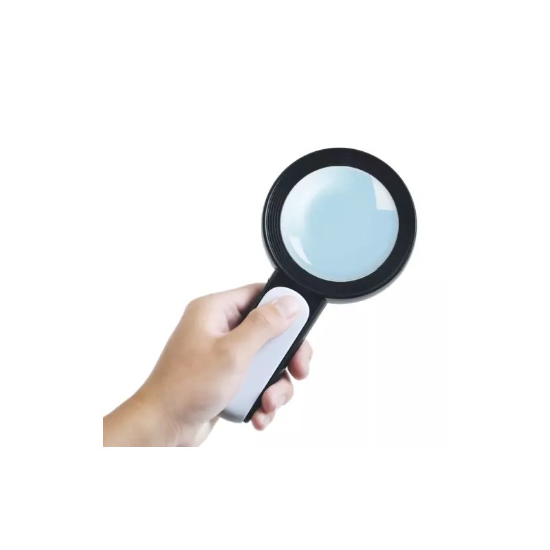 This magnifying glass is a practical tool with its mix of high magnification and flexible lighting options, designed to enhance visibility and reading comfort across various lighting conditions.
