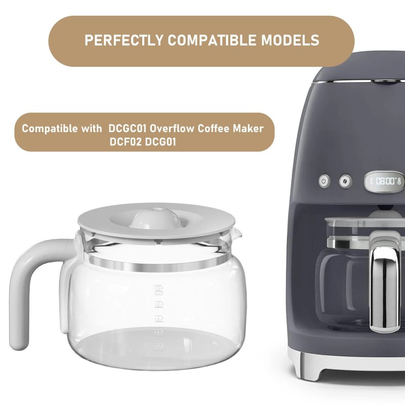 ☕Compatible models: The 10-Cup Coffee Maker Glass Carafe Replacement Pot Compatible with DCGC01 Overflow Coffee Maker DCF02 DCG01. This coffee carafe glass pot ensures a seamless fit, allowing you to enjoy a hassle-free coffee brewing experience. Please Check your coffeemaker model number and dimension to be sure this is right carafe for your coffee machine.