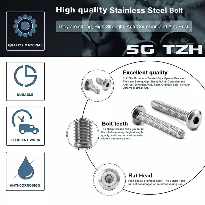 - RUGGED AND DURABLE - SG TZH Flat Head Hex Socket Cap Screws Bolts made of high-quality 18-8(304)Stainless Steel,which has higher corrosion resistance and anti-rust effect than ordinary bolt, longer service life, not easy to damage, more solid.