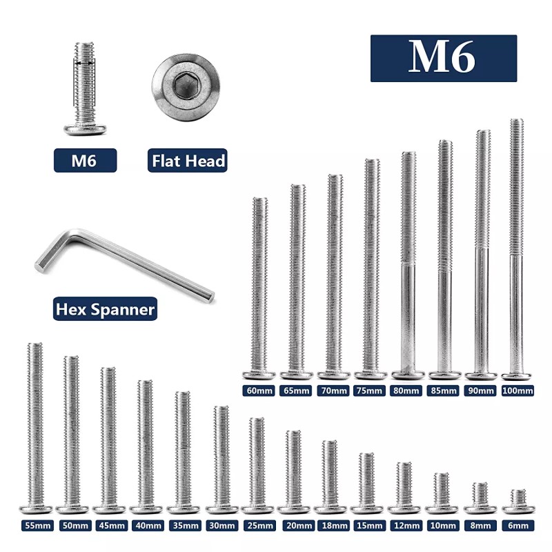- Product Size - Thread Diameter: 6mm; Thread Pitch: 1mm; Screw Length: 18mm. Head Diameter: 12.8mm. Please check specfication by picture 2