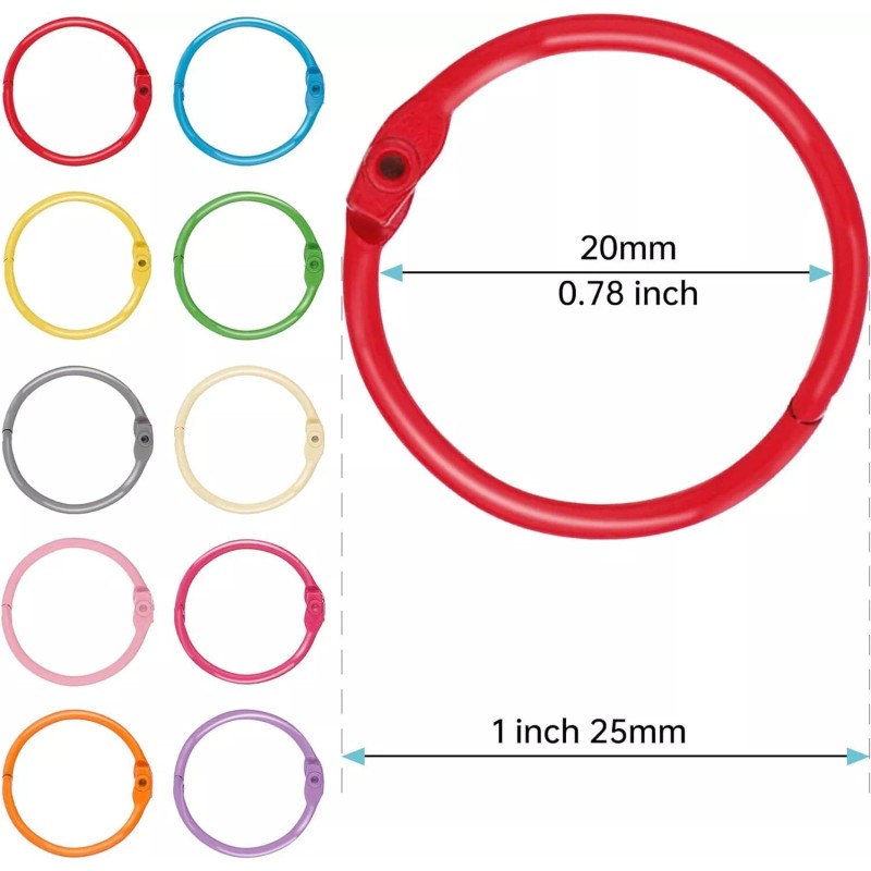 100 Pack 1 Inch Loose Leaf Binder Rings Colorful for Index Cards Book Rings