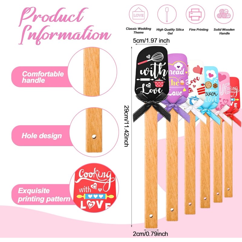 - Baking Tools Printed with Love: you can use a wooden handled spatula to make some of your favorite desserts, use the round silicone tip to quickly scrape the cream out of the bowl and spread it on the cake to make your baking process more fun