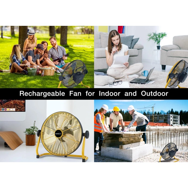 - ✔ Ideal for Outdoor: This rechargeable floor fan can run up to 24 hours after a full recharge. That is enough to satisfy your needs for a few days trip. In addition, the stability and portable design makes this rechargeable fan be suitable for outdoor use, such as BBQ, camping, fishing, outdoor sports etc.