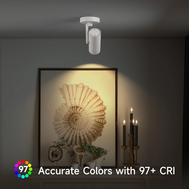 • Flicker-Free Illumination: Equipped with a 12W COB chip from renowned American LED, this spotlight provides a flicker-free light source with a superior CRI of 97, ensuring vibrant and accurate color representation