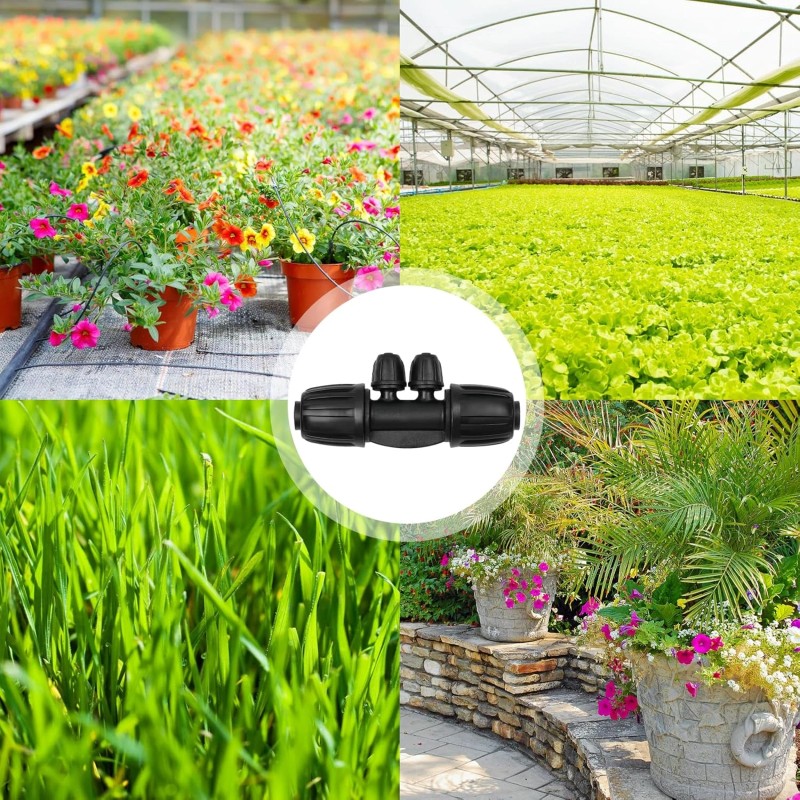 This set includes 1/2" to 1/4" barbed tee drip irrigation fittings, allowing you to divide 1/2 inch irrigation pipe into 1/4 inch pipes.