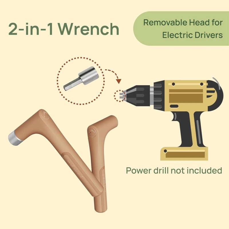 2-in-1 Wrench for Easy Installation. Included with your beds, it features a removable head compatible with electric drivers, enhancing efficiency.