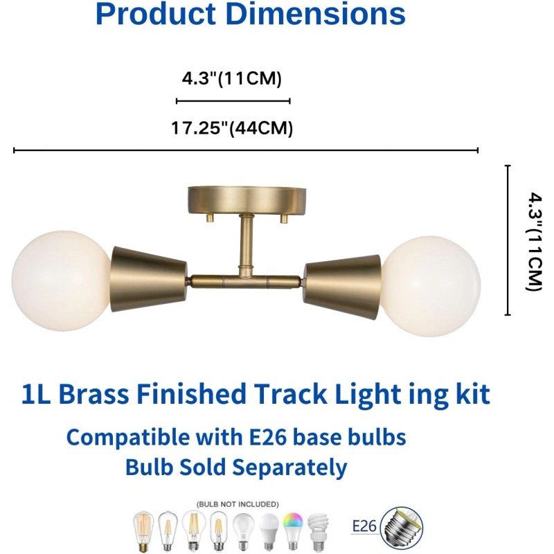 • Bulb Requirements and dimmable: The small glod track light 2xE26 medium base 60W bulbs (sold separately) compatible with recommended LED, incandescent and halogen bulbs, completely dimmable bulb with a compatible dimmer switch(sold separately) to create the perfect ambience