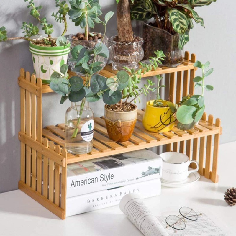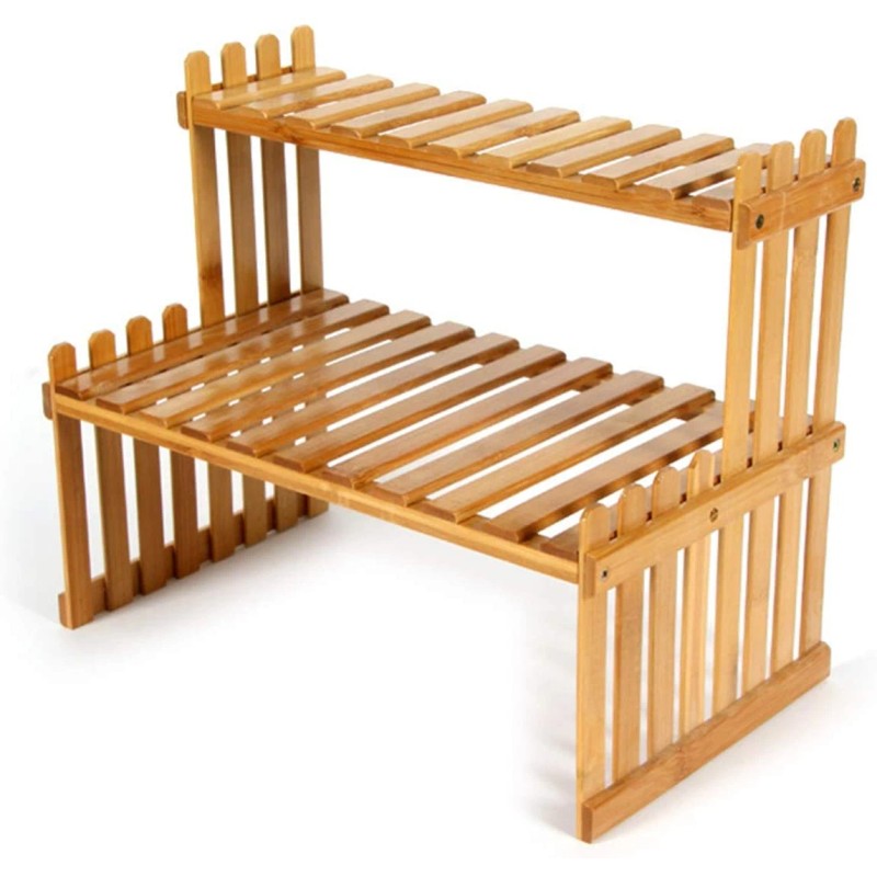 Does not apply 2 Tier Table Top Bamboo Plant Stand - Desktop Flower Shelf Rack Flower Pot Di...
