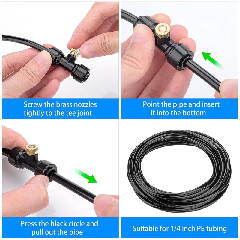 This misting tees and nozzles are designed for our low pressure misting system, it is a good match with the misting fitting. The mist spray nozzle is applicated in the low pressure fog - making the spraying liquid could be running. Let you enjoy your backyard in just minutes.