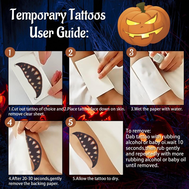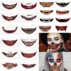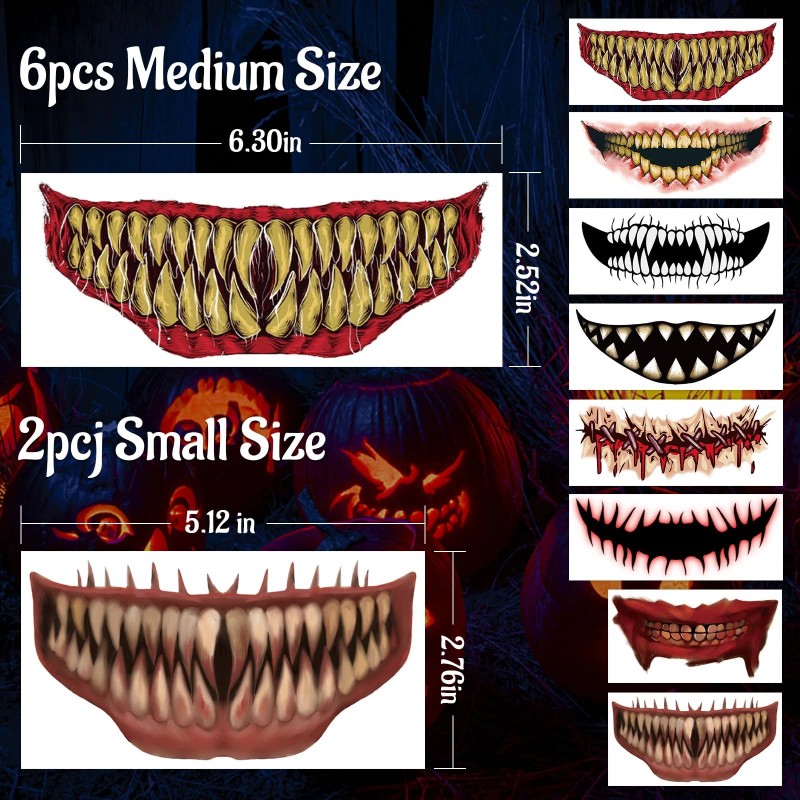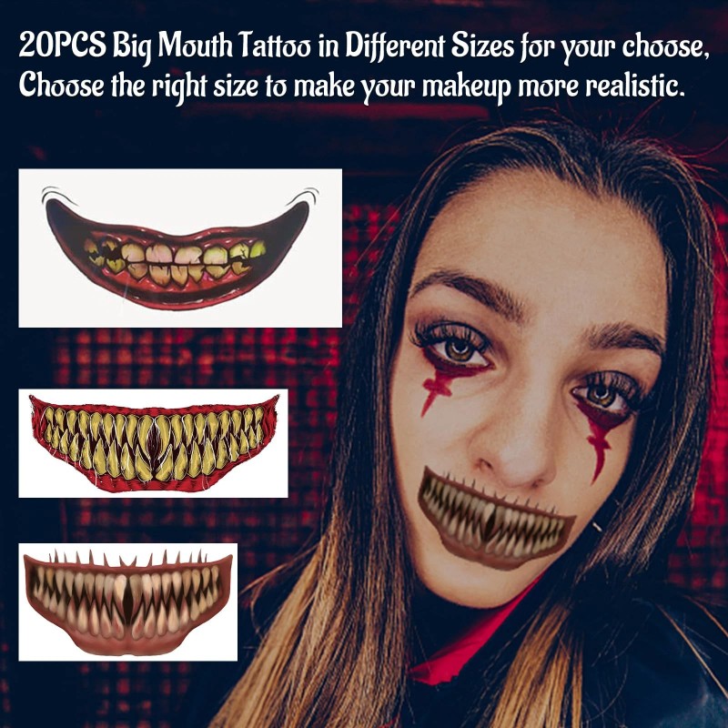 Does not apply 20 PCS Scary Big Mouth Temporary Tattoo, Halloween Realistic Face Stickers,